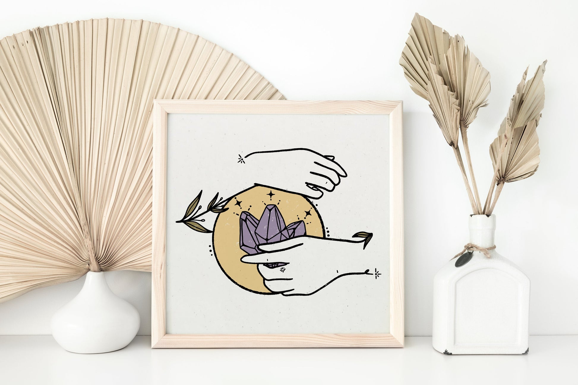 All of my digitally created prints are professionally printed on 12"x12" medium weight speckled recycled cardstock paper. The print ships in a flat mailer and comes unframed in a clear sleeve with chipboard backing.