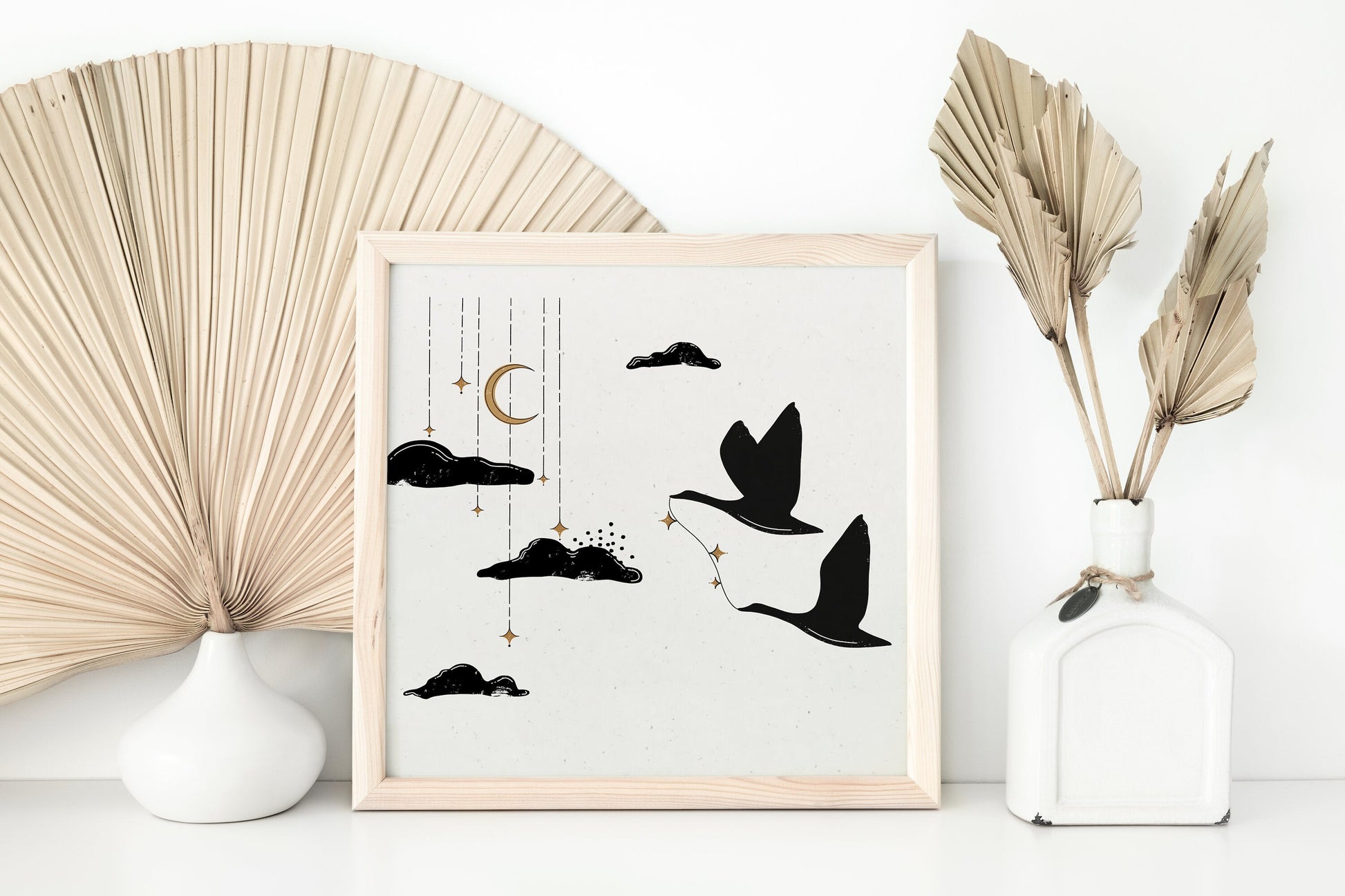 All of my digitally created prints are professionally printed on 12"x12" medium weight speckled recycled cardstock paper. The print ships in a flat mailer and comes unframed in a clear sleeve with chipboard backing.