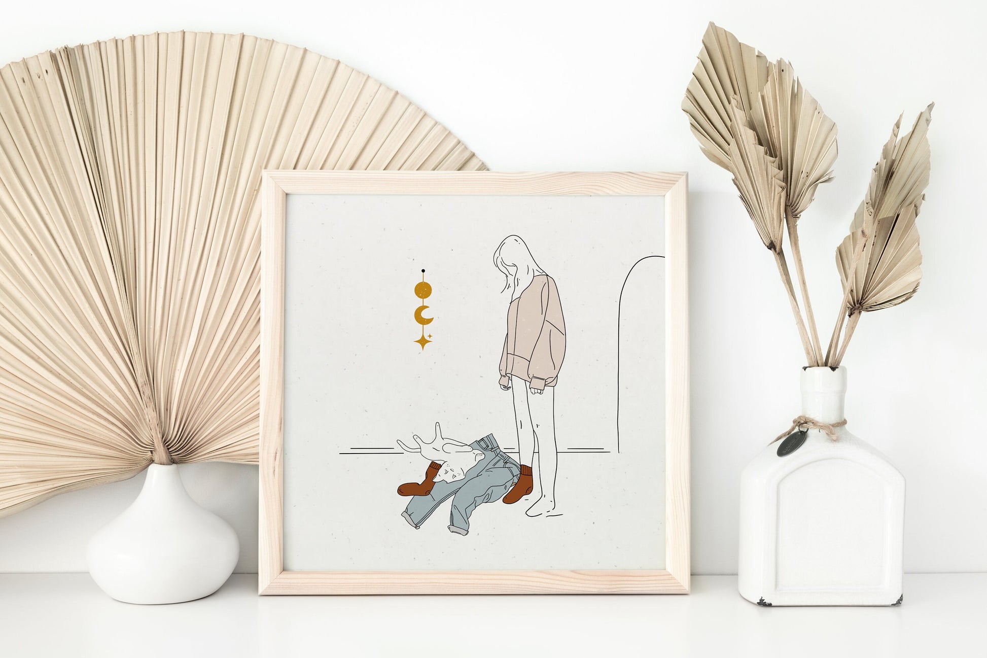 All of my digitally created prints are professionally printed on 12"x12" medium weight speckled recycled cardstock paper. The print ships in a flat mailer and comes unframed in a clear sleeve with chipboard backing.