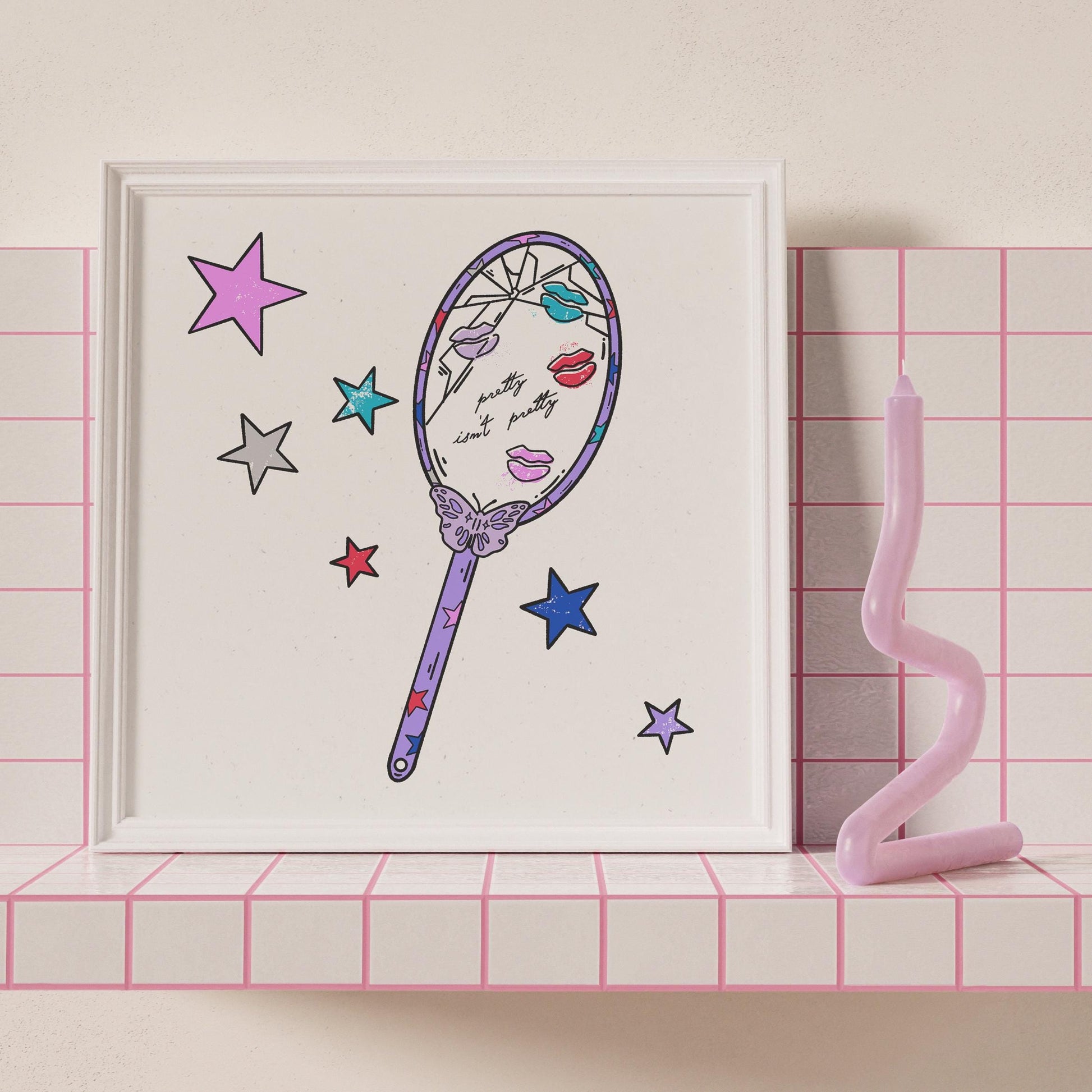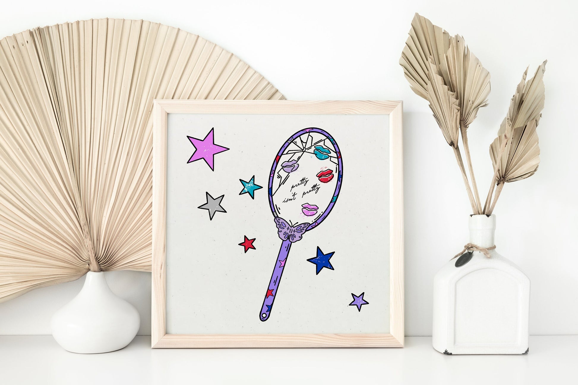 All of my digitally created prints are professionally printed on medium weight speckled recycled cardstock paper. The print ships in a flat mailer and comes unframed in a clear sleeve with chipboard backing.