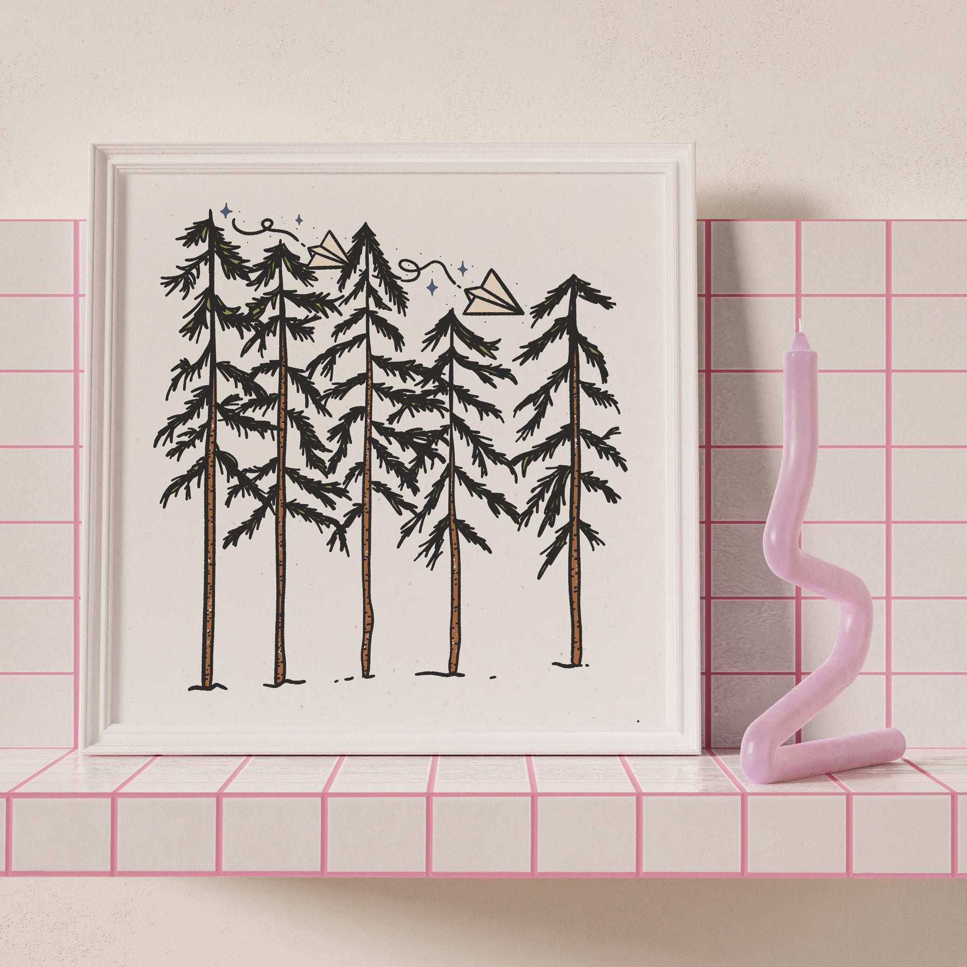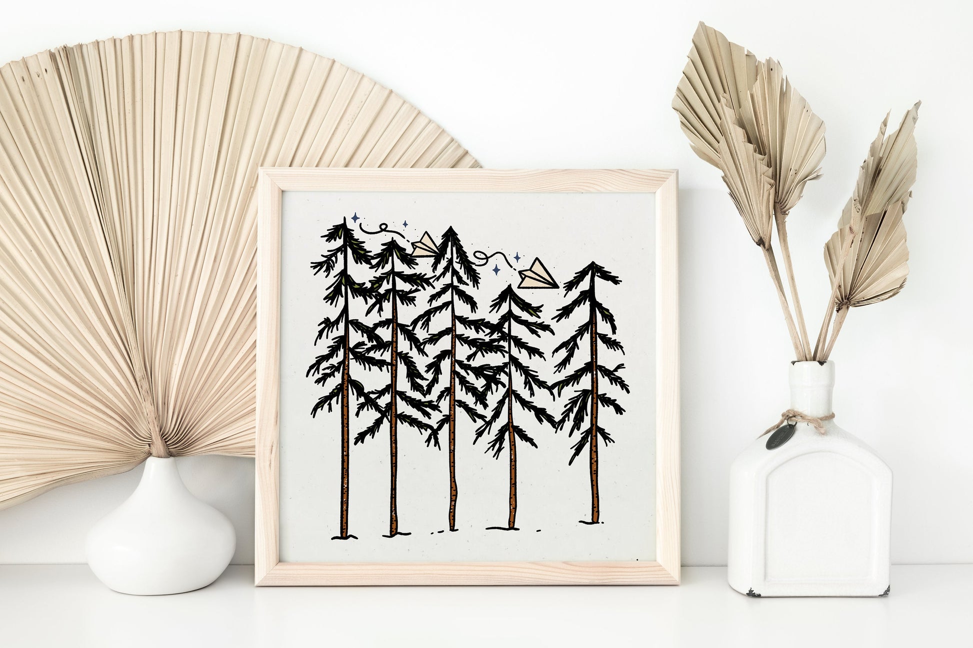 All of my digitally created prints are professionally printed on 12"x12" medium weight speckled recycled cardstock paper. The print ships in a flat mailer and comes unframed in a clear sleeve with chipboard backing.