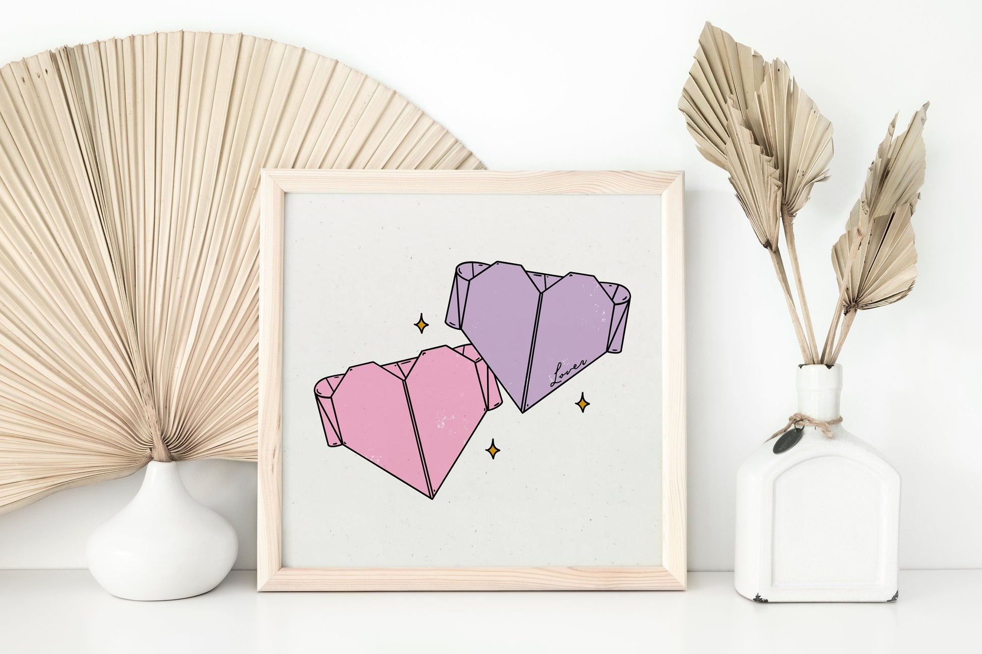 All of my digitally created prints are professionally printed on 12"x12" medium weight speckled recycled cardstock paper. The print ships in a flat mailer and comes unframed in a clear sleeve with chipboard backing.