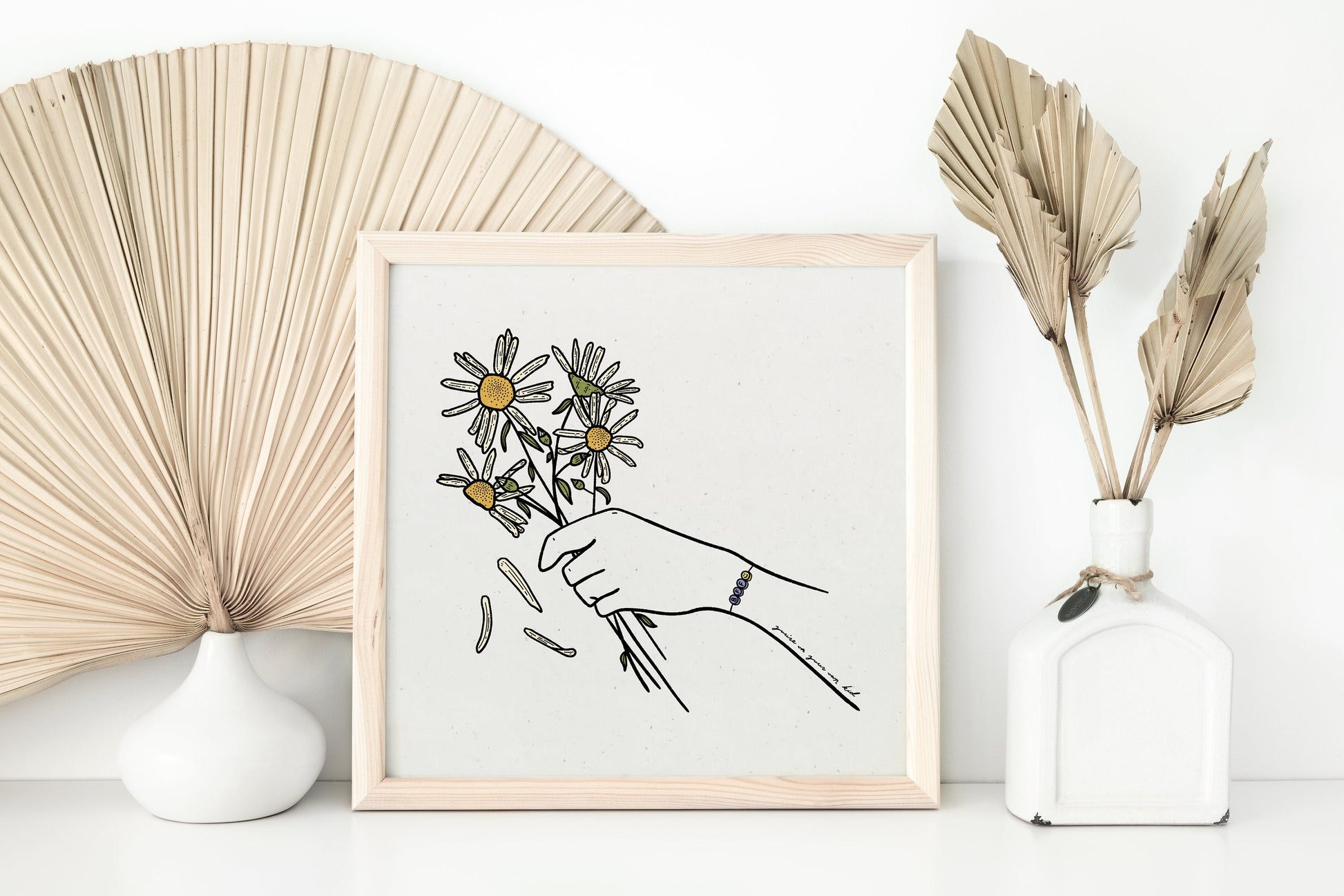 All of my digitally created prints are professionally printed on 12"x12" medium weight speckled recycled cardstock paper. The print ships in a flat mailer and comes unframed in a clear sleeve with chipboard backing.