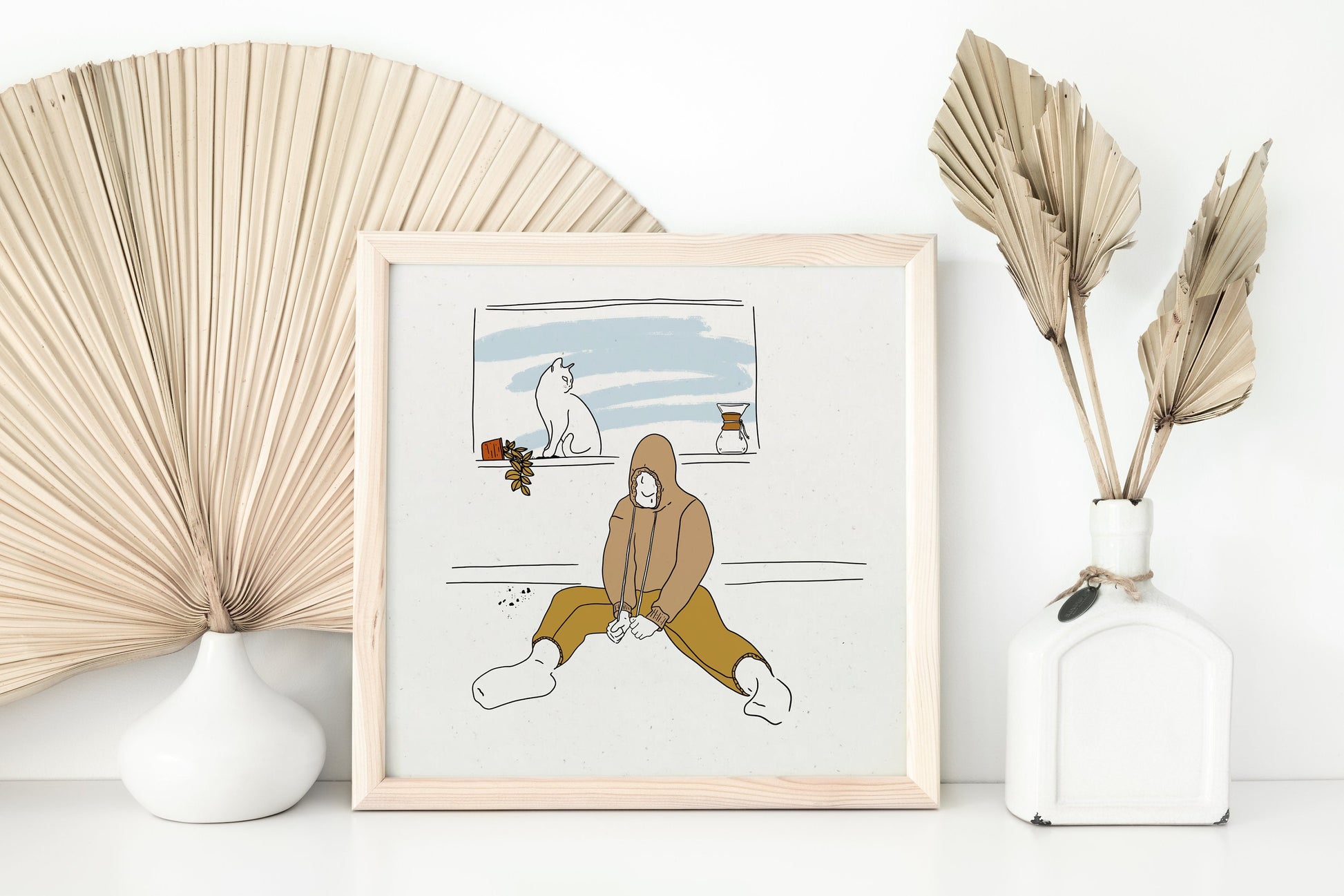 All of my digitally created prints are professionally printed on 12"x12" medium weight speckled recycled cardstock paper. The print ships in a flat mailer and comes unframed in a clear sleeve with chipboard backing.
